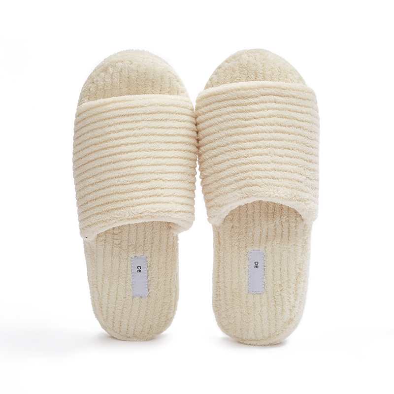 Custom Logo Coral Fleece Indoor Slippers White Disposable Luxury Hotel Amenities Washable