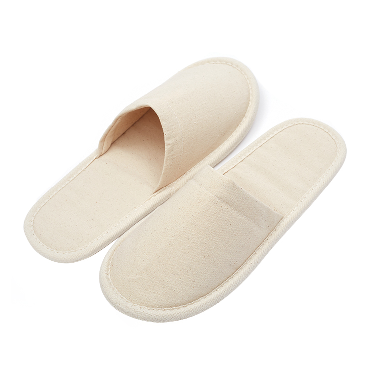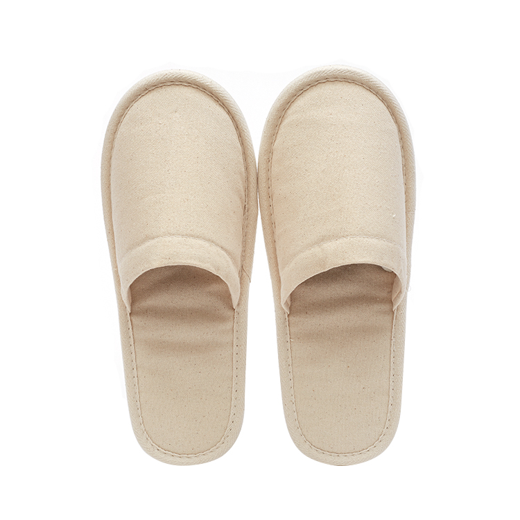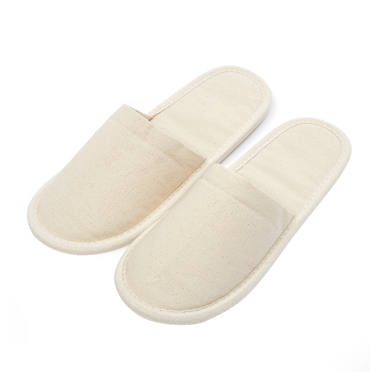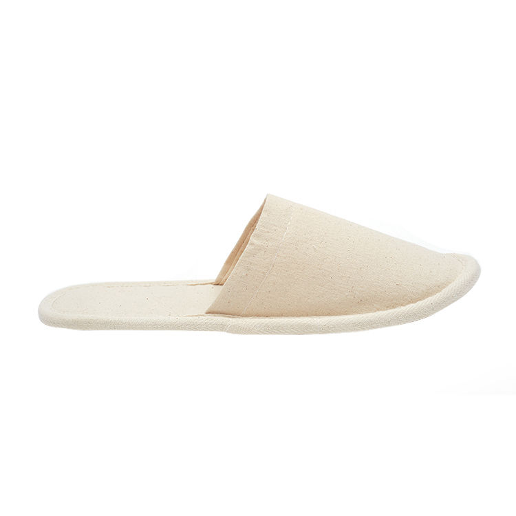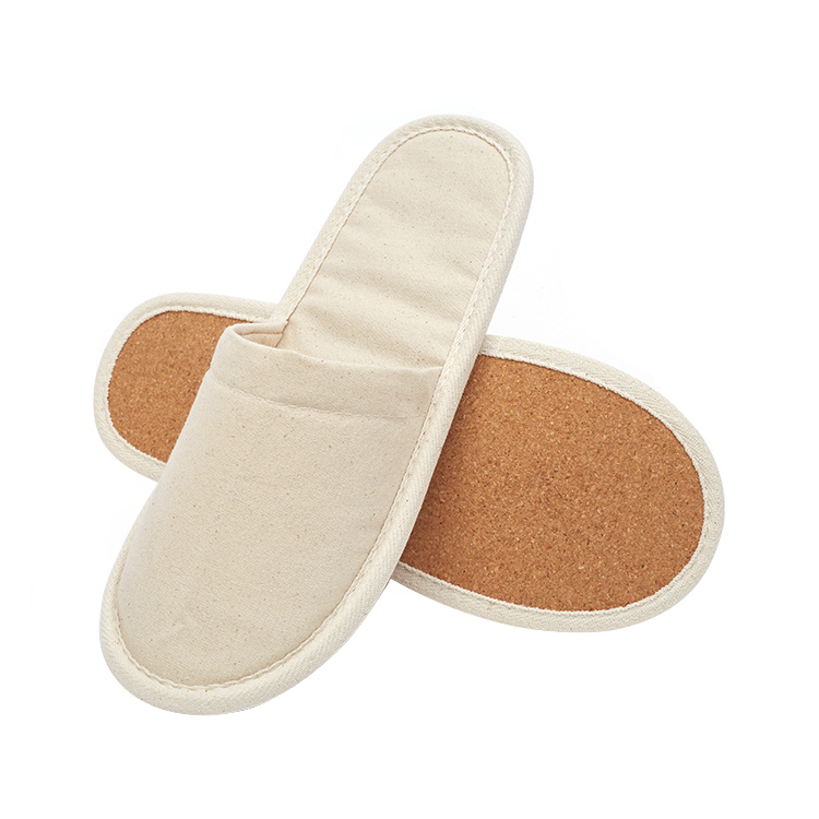 Customized Eco Friendly 100% Cotton Cork Sole Biodegradable Flat Closed Toe Disposable Hotel Slippers