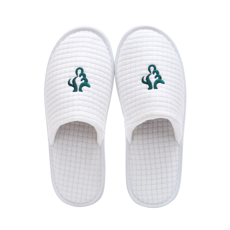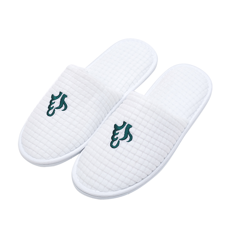 Factory Hot Sale White Slippers Custom Logo Embroidery Logo Closed Toe Waffle Disposable Hotel Slippers