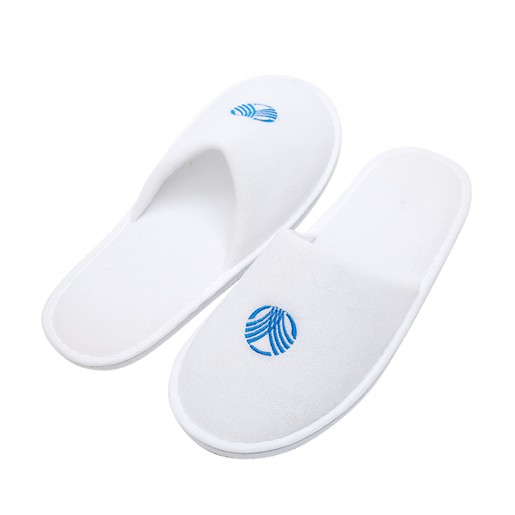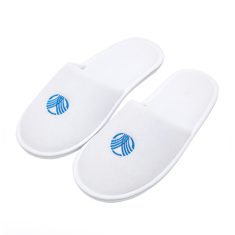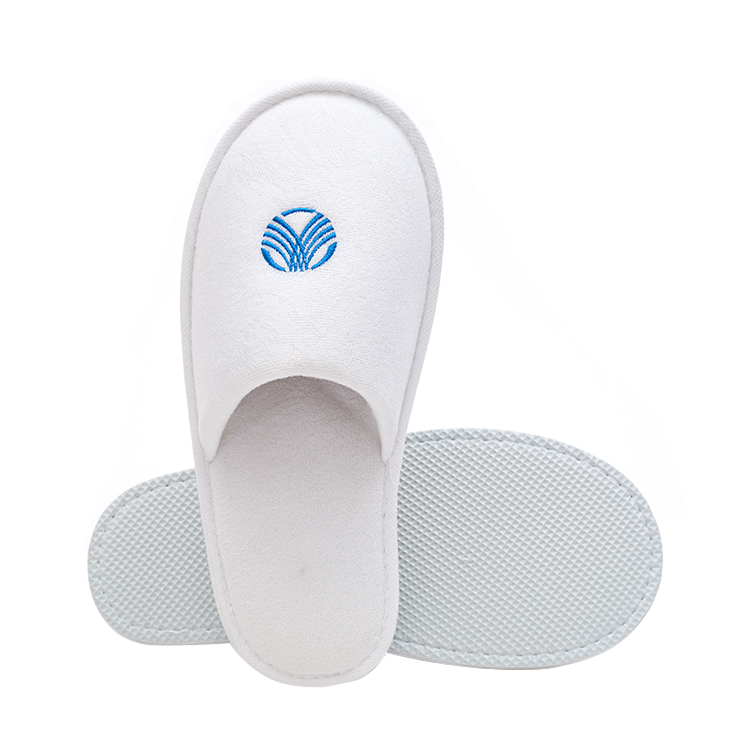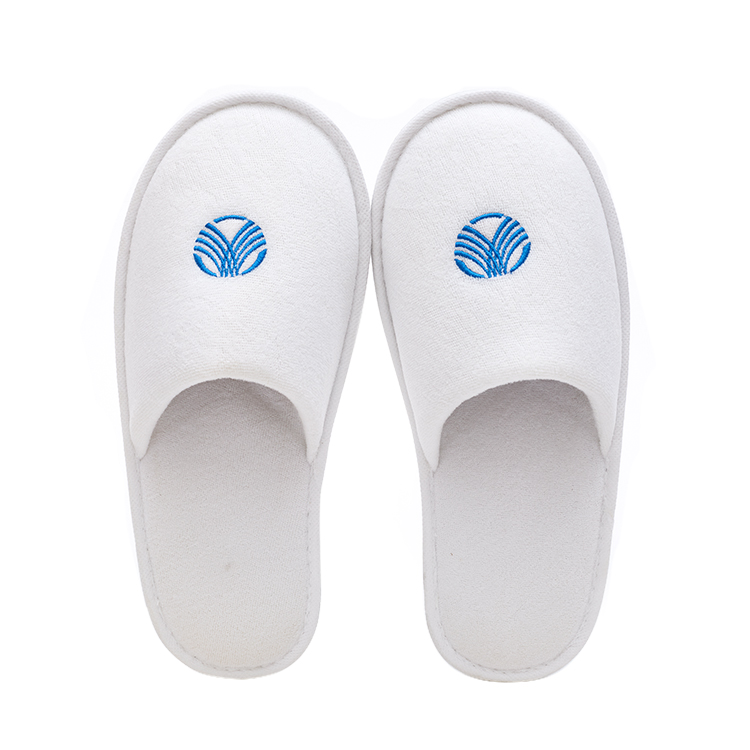 White Terry Towel Slippers for Hotels Disposable with Custom Printed Logo